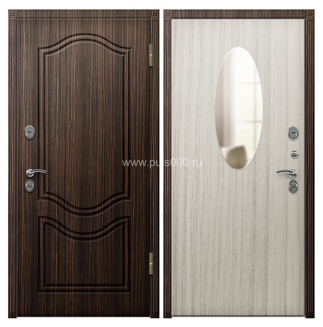 Входная металлическая квартирная дверь МДФ с зеркалом зебрано белый ясень MDF-315