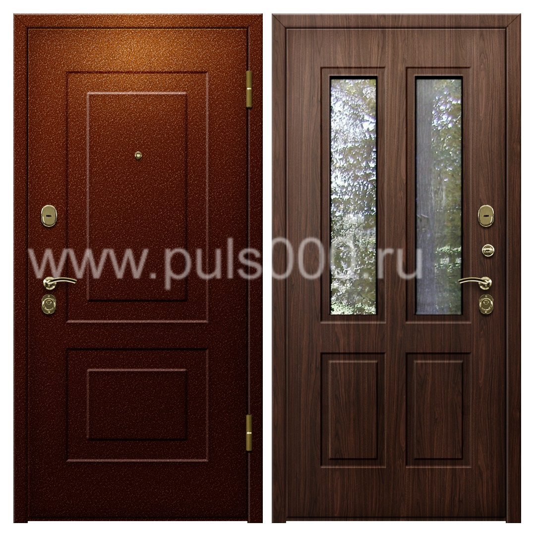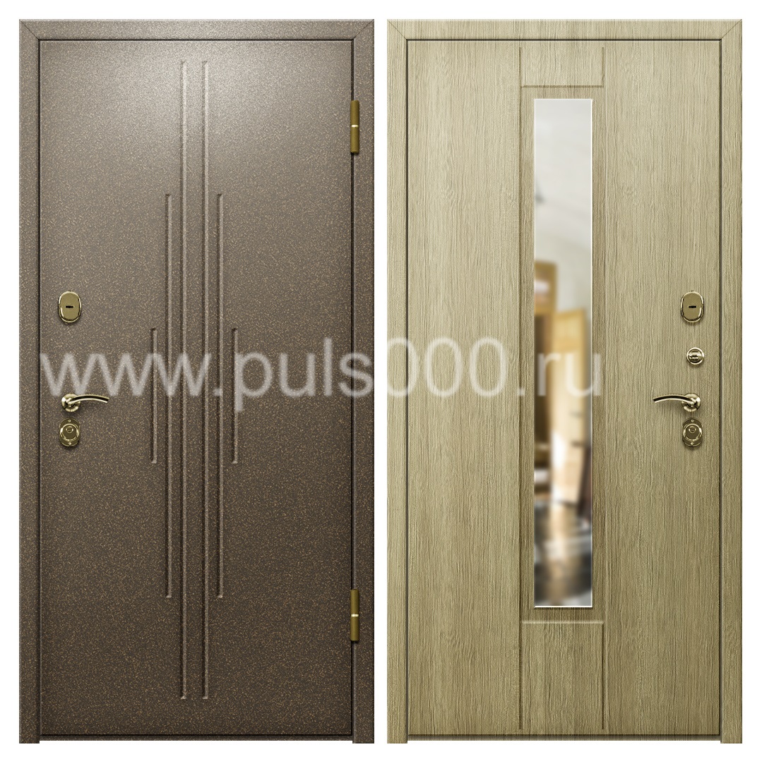 Основа конструкции — железный каркас из профильной трубы, усиленный ребрами жесткости. Стальная обшивка, обеспечивающая высокий уровень взломостойкости, с обеих сторон покрыта декоративными панелями из: