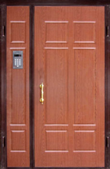 Уделено внимание и внешнему виду. Металлические двери в подъезд облицованы панелями из дорогих и прочных материалов — МДФ, ламинатом, окрашенной порошковым способом стальным листом. С наружной стороны используются стойкие к повышенной влажности, перепадам температур и действию ультрафиолета материалы. Для отделки внутренней стороны створок выбирают винилискожу, экокожу, МДФ, деревянный шпон ценных пород.