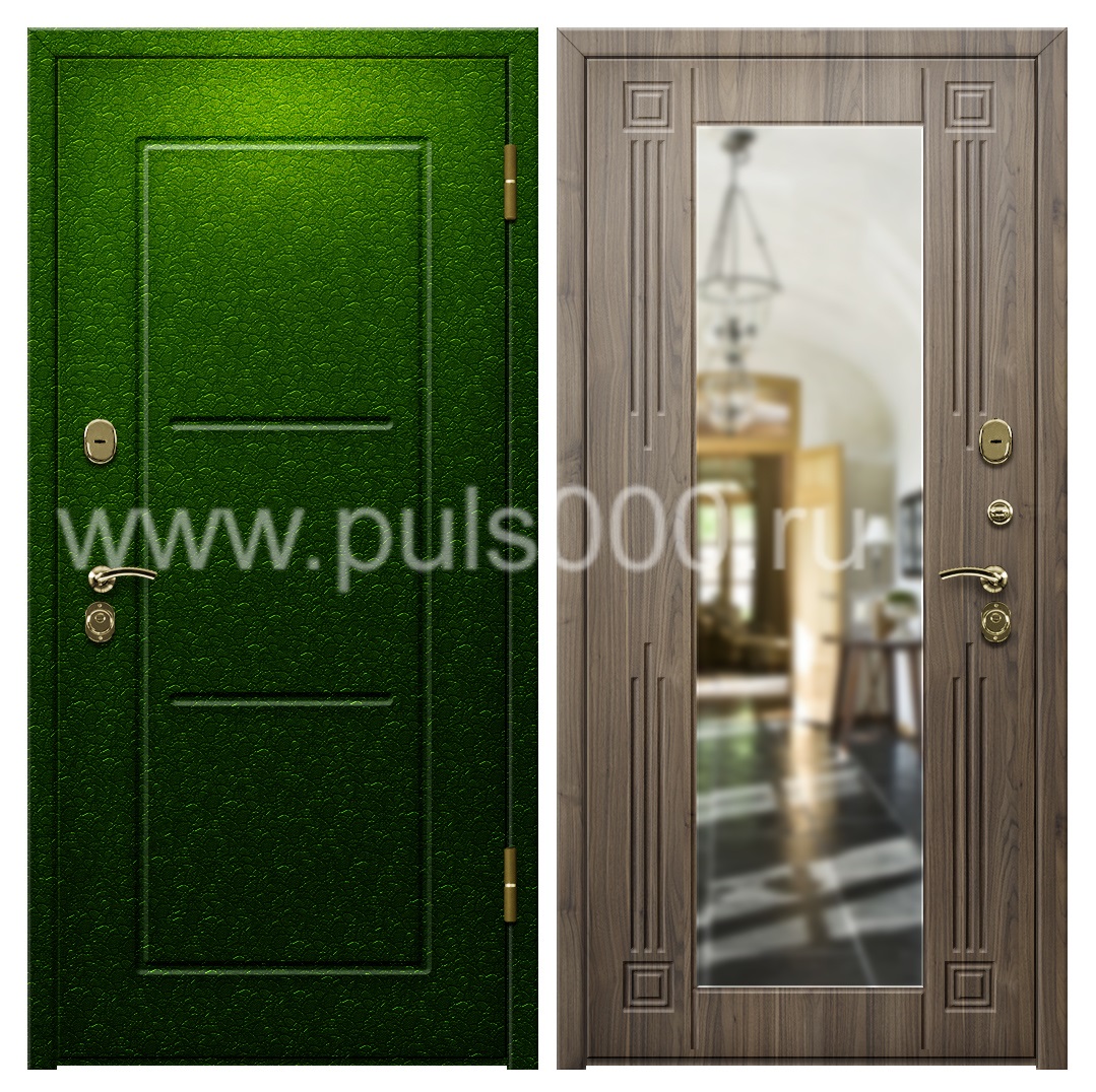 Зеленая квартирная дверь с зеркалом и шумоизоляцией PR-1122