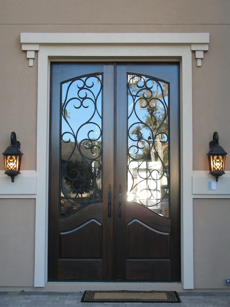 Красивые металлические двери со стеклом устанавливаются в Заинске на входах в загородные дома, коттеджи, рестораны, магазины. Если на лестничной площадке предусмотрена тамбурная прочная дверь, тол остекленную модель можно купить и для квартиры. Для увеличения уровня противовзломной защиты зона остекления закрывается кованой декоративной решеткой, соединенной с железным листом внутри створок.